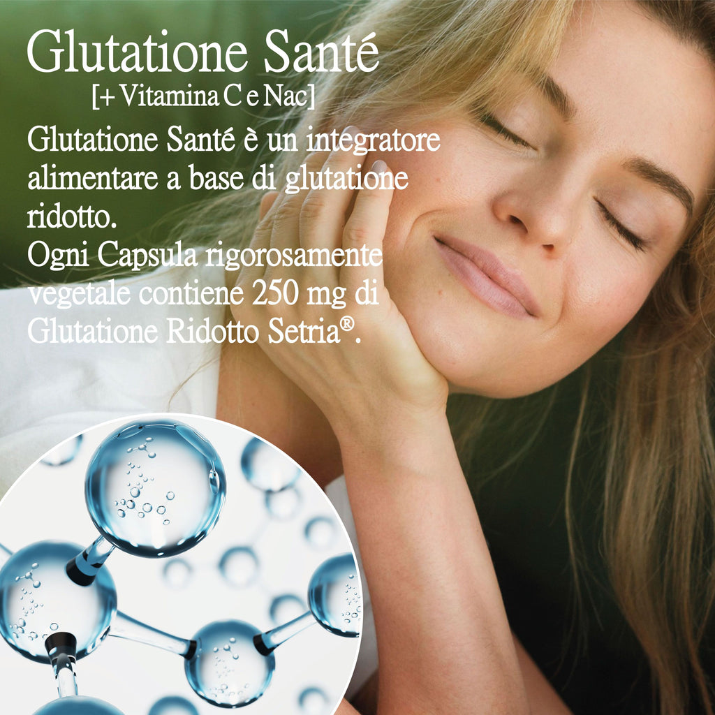 Glutatione Santé utilizza Glutatione Ridotto Setria®, la forma brevettata e clinicamente più studiata al mondo, associata a Vitamina C e NAC, per una formulazione sinergica ad elevata qualità.