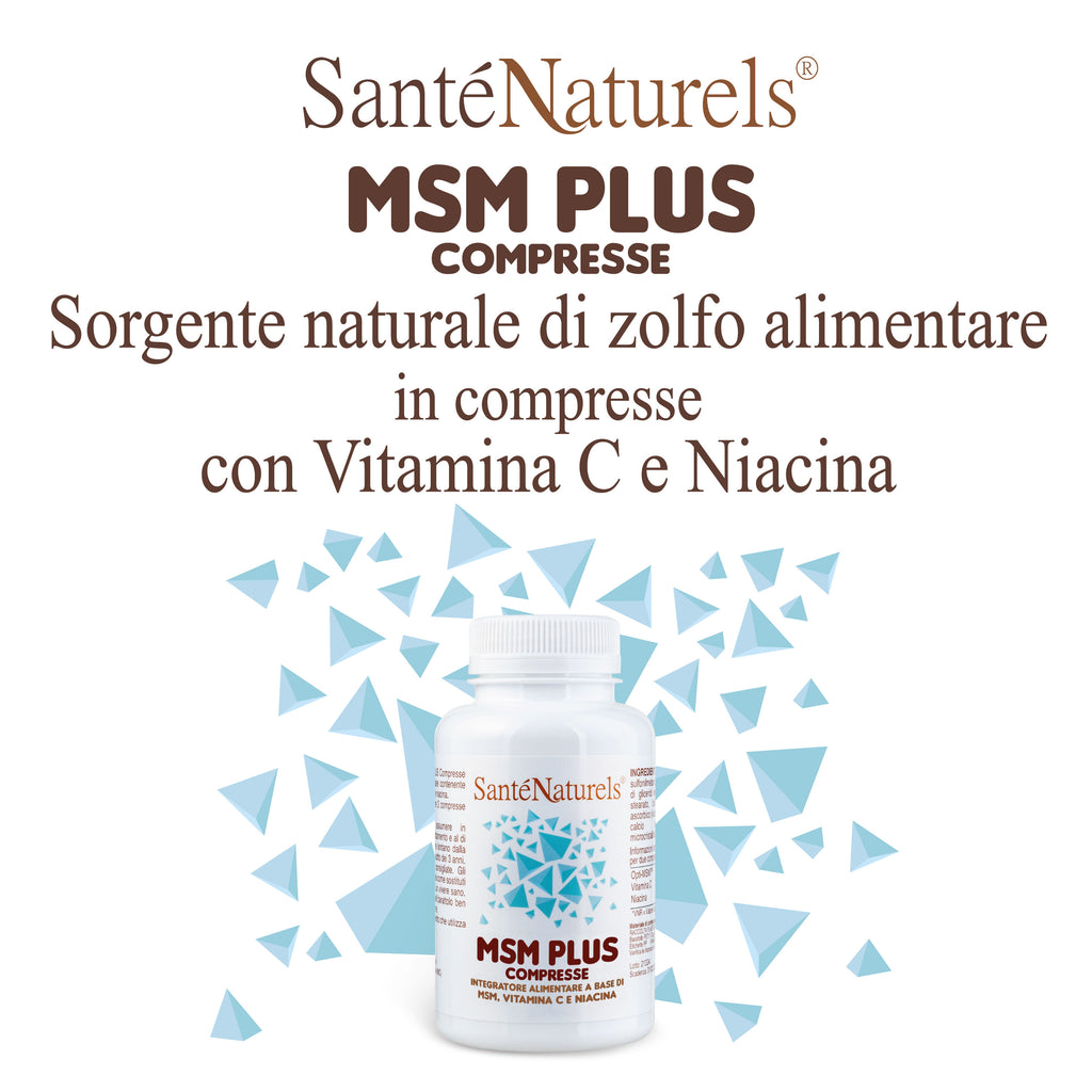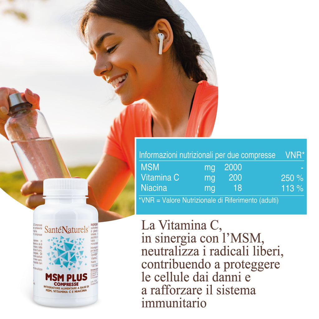 Integratore alimentare in compresse utilizzato da atleti e medici dello sport, Msm (Metilsulfonilmetano) potenziato con Vitamina C, Niacina.