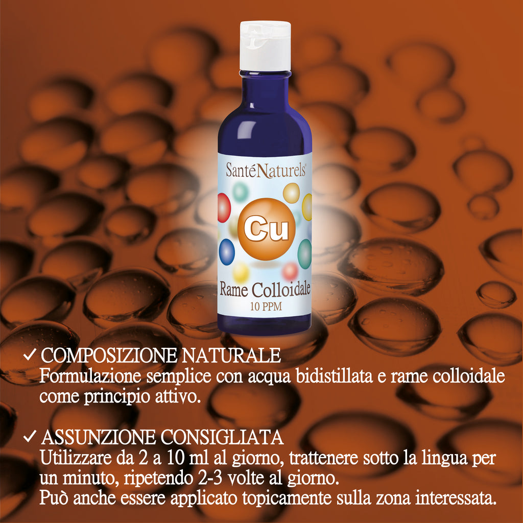 In forma colloidale, il rame viene ottenuto tramite dispersione controllata di particelle metalliche in acqua pura.